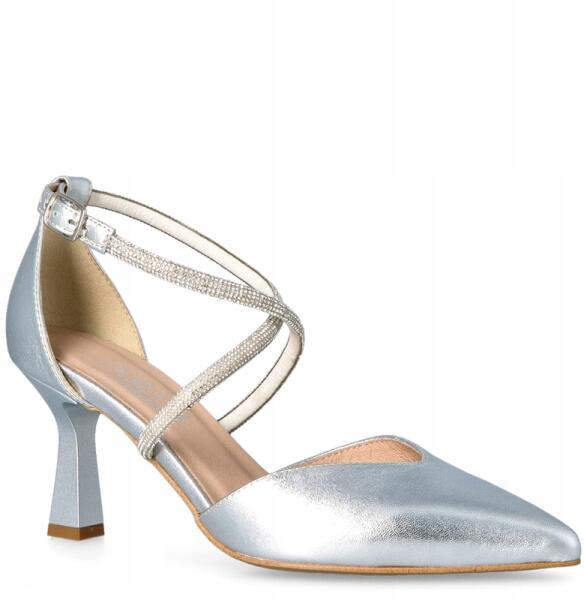 Kotyl Esküvői magassarkú cipő csillogó csíkokkal Kotyl 3713 Ezüst 38 (KOTYL 3713 SREBRNY LICO (srebrny))
