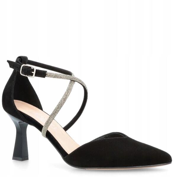 Kotyl Magassarkú cipő csillogó csíkokkal Kotyl 3713 Fekete 41 (KOTYL 3713 CZARNY ZAMSZ(czarny))