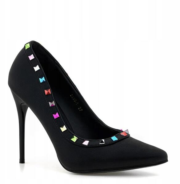 Vices Fekete ökobőr magassarkú cipő szegecsekkel díszítve 35 Vices ejka! (E2095-1 Black 35)